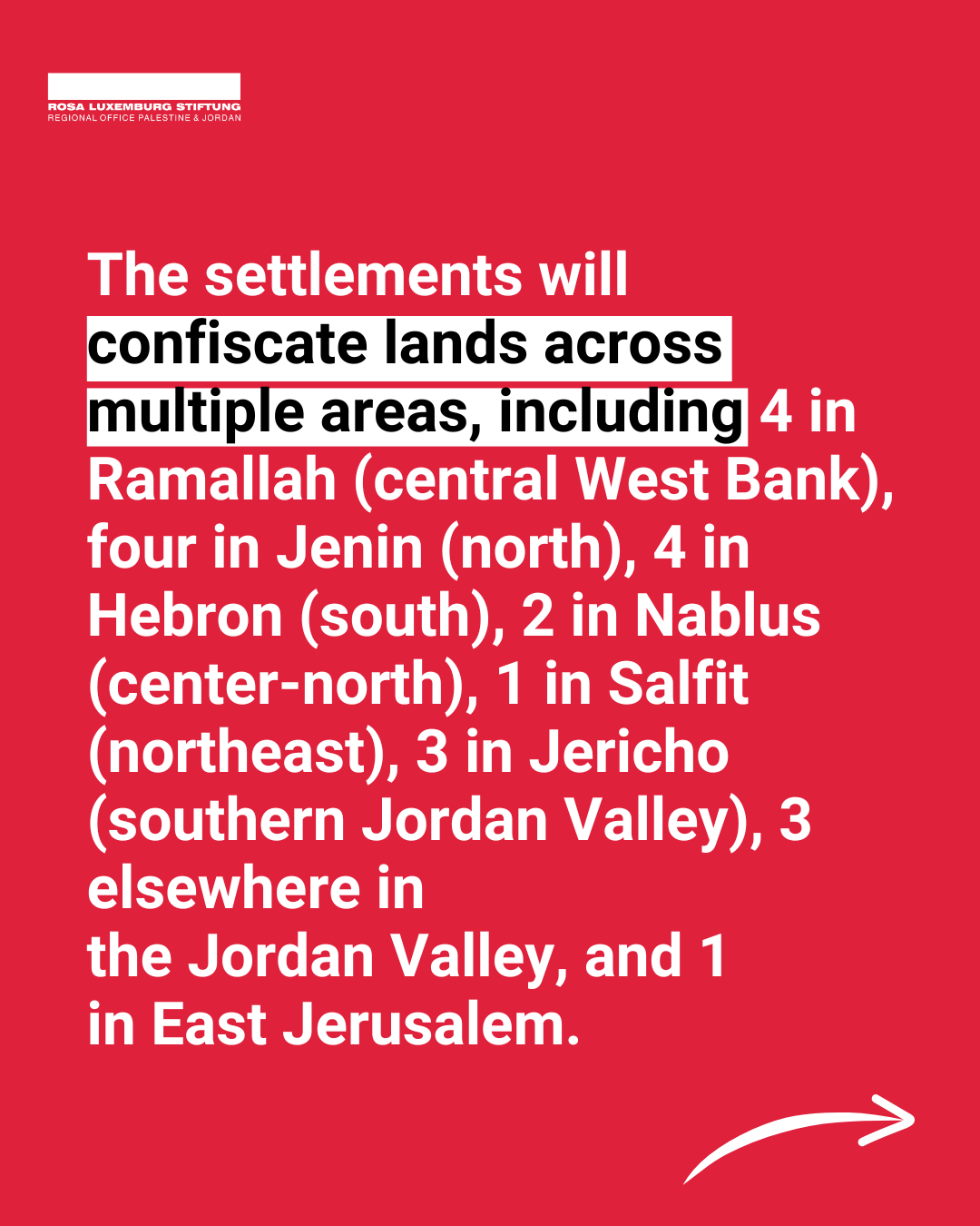 The 22 settlements will confiscate lands across various regions of the West Bank.